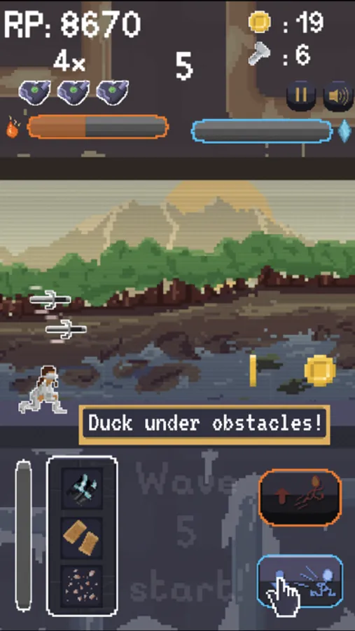 Jump, duck, hang and crouch your way around a myriad of obstacles in the time-twister machine. As a new test subject, you'll be able to explore multiple time periods old and new while collecting Research Points. (RP)