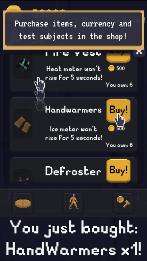 Collect coins and bolts during the simulation to buy more items and unlock new test subjects. How long can you survive in this simulation until you're trapped in time?