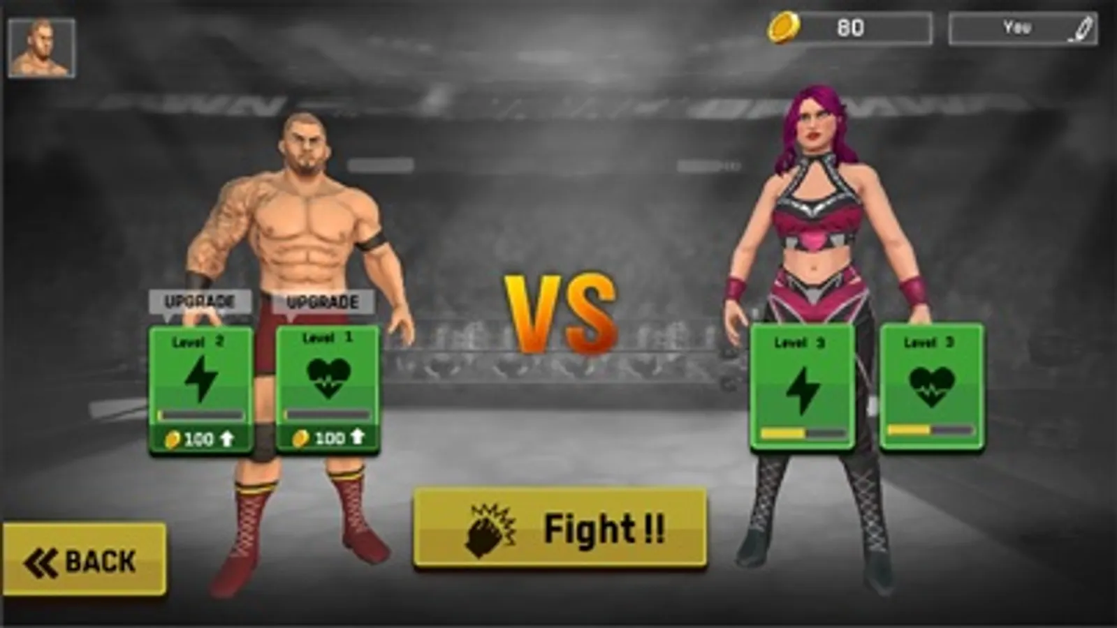 Pick a player of your choice. Unlock new players for the duel fight by using coins. Coins can be earned through collecting daily rewards or fighting your way through knocking out your rivals completely and win the wrestling match. Personalize your wrestling 1v1 fight experience by selecting a choice of player and setting up a name. The next levels can be unlocked by winning the current ring round.