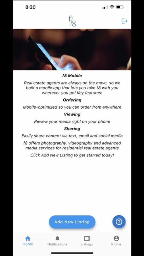 In the f8 Media mobile app, real estate agents and property managers can: