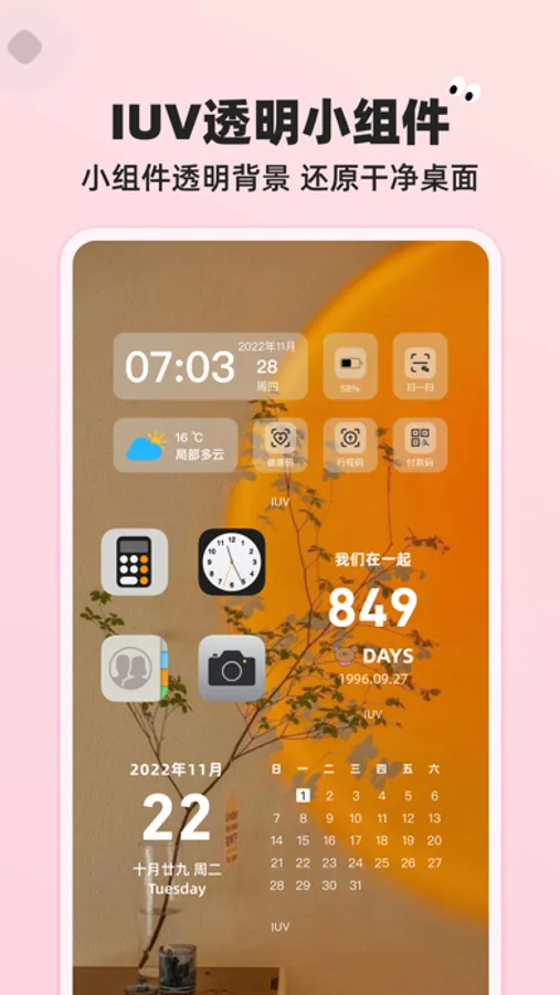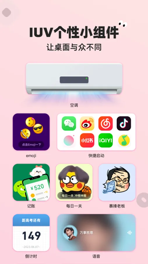IUV是一款小组件APP,小组件颜值在线,你可以自定义装扮自己桌面。
