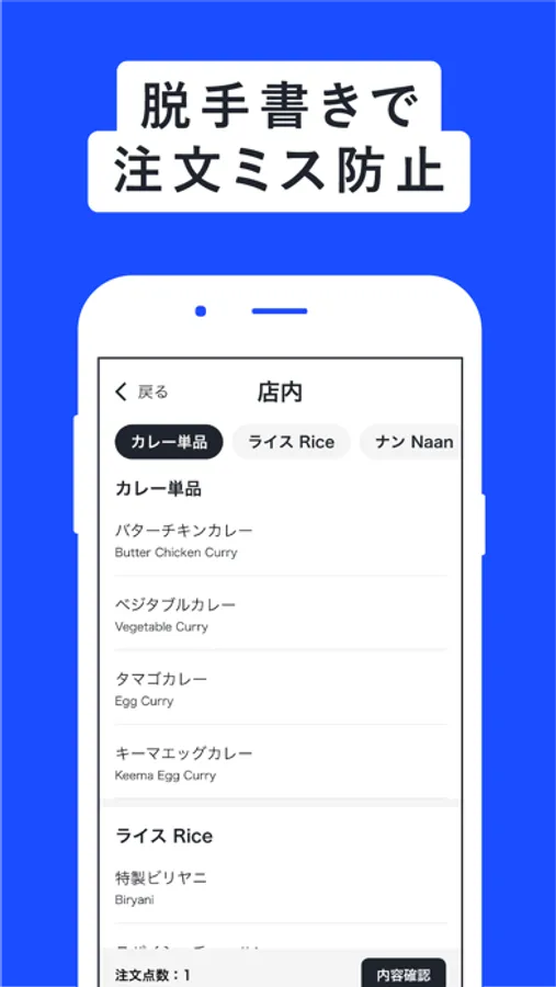 アプリで注文入力でオーダーミス防止と、簡単に注文伝票をプリント、注文業務を効率化します。