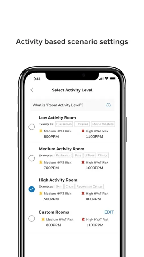 This application helps users to check CO2, Temp and Humidity, from the wifi enabled Honeywell Transmission Risk Air Monitor device and push it to cloud system for further monitoring and analysis. Also it features a proprietary risk alerting system based on different activity levels within a room. This allows end users to proactively improve indoor ventilation, which according to the U.S. Centers for Disease Control and Prevention1, can help reduce the spread of certain diseases and decrease the risk of exposure among building occupants.