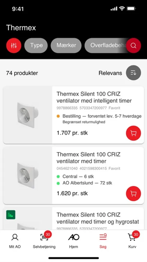 AO Mobil giver dig nem adgang til hele sortimentet hos AO og EA Værktøj, og via den intelligente søgemotor finder du let de varer, du har brug for. Se lagerstatus på varer i AO- og EA-butikker samt vores centrallager og bestil varerne til levering eller afhentning i butik indenfor en time eller til dagen efter.