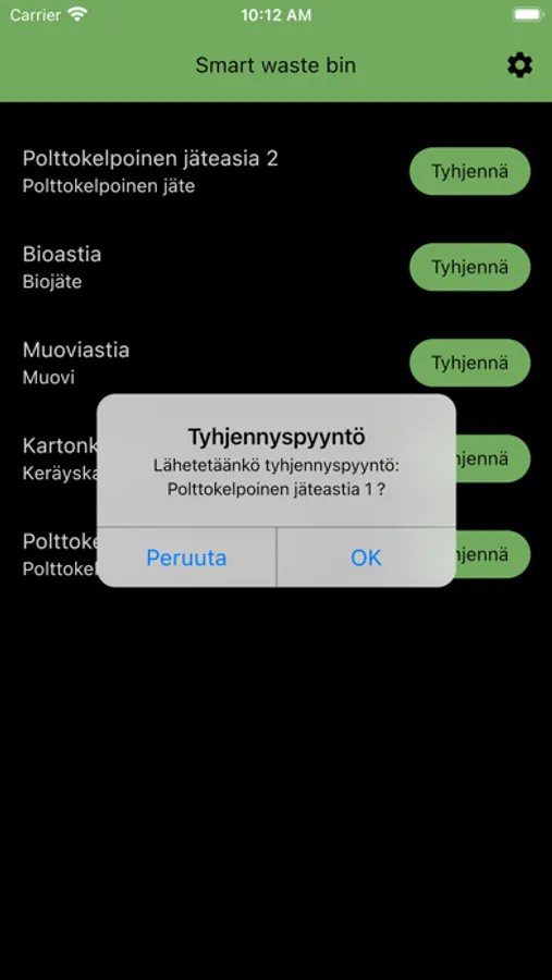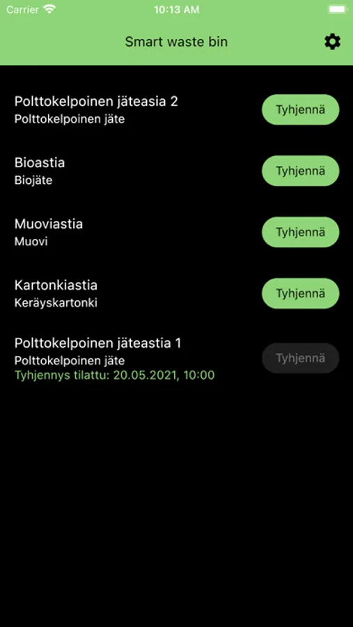 Customers can order waste collection with Smart Waste Bin app. It’s easy to use: just press Empty my bin. To use Smart Waste Bin application, you need to have an agreement with a waste hauler company using the application.