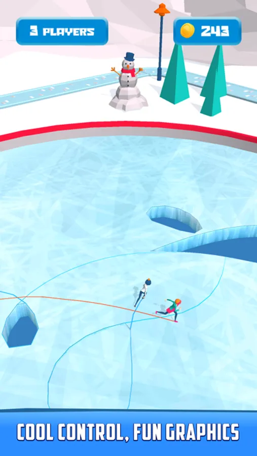 In the game, you ride on a frozen lake with other participants. The main task is to drown all the opponents under the ice with the help of a line that stretches behind your hero. Use your lines or your opponents ' lines to drown the ice in the water. Don't get caught in the holes in the ice made by your opponents. Strive to remain the only one on the lake.