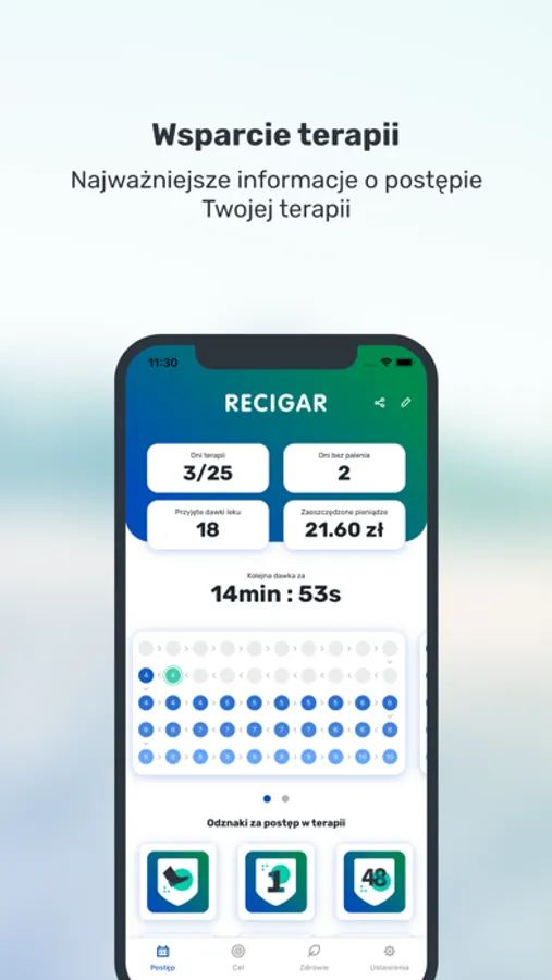 → Aplikacja przypomina Ci o zażyciu tabletki, wspomagającej rzucanie palenia. - Postęp terapii prezentowany w formie blistra ułatwi kontrolę dawkowania.