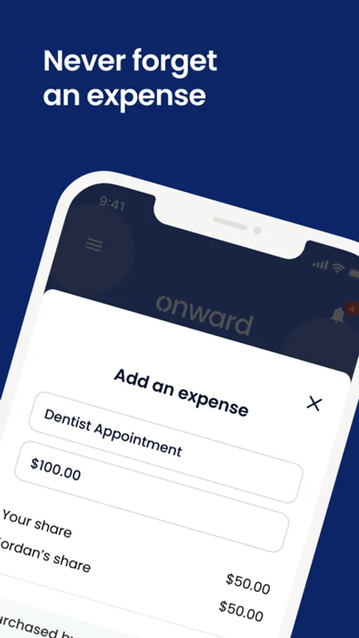 We are on a mission to improve the lives of co-parents and help them build happier homes for their children. You can count on Onward to handle all expense-related communication with your co-parent so that you don't have to. Add your expenses, upload receipts and split them with your co-parent so you can both easily track your money!