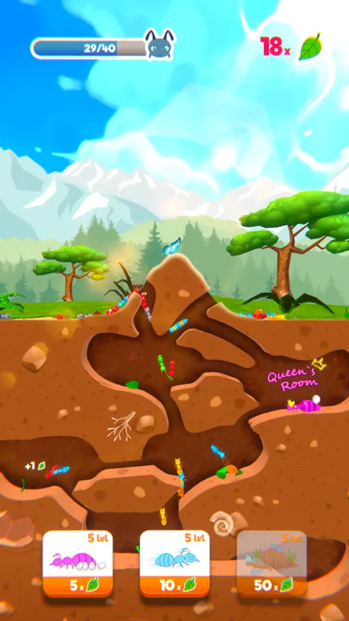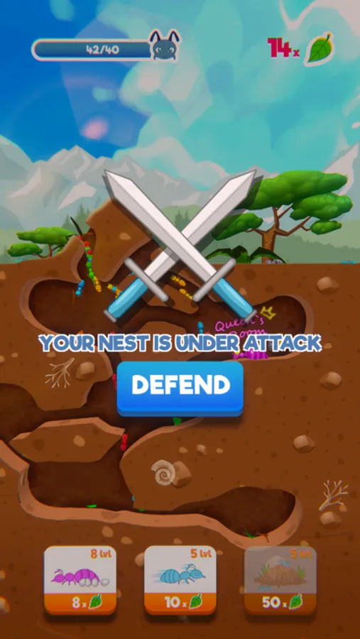 In this game you build a colony of ants. Collect ants to resist the invasion later. Upgrade your queen to lay eggs faster and create worker ants. Use the workers to make new tunnels for the colony.
