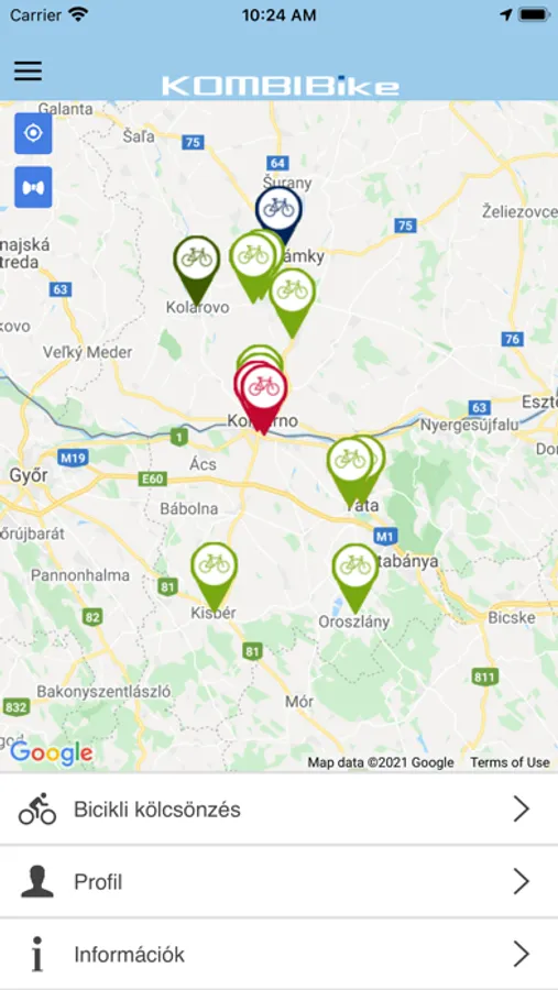 A KOMBIbike határon átnyúló kerékpárkölcsönző rendszer egyedi, gyors és környezetbarát közlekedési mód. Az alkalmazás egyszerűsíti a kerékpárkölcsönzést mind az alkalmi, mind pedig a rendszeres kerékpározók és turisták számára. Az alkalmazásba történő bejelentkezés felhasználóbarát élményt nyújt, amelynek köszönhetően a felhasználó betekintést nyer a bérlet-és jegyvásárlási lehetőségekbe.