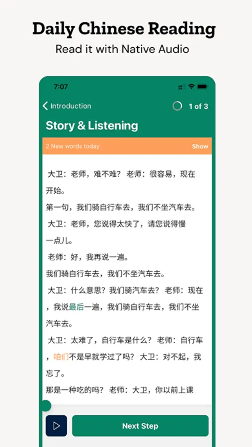 • Daily Native Recording of the Story in Chinese → Practice your Listening