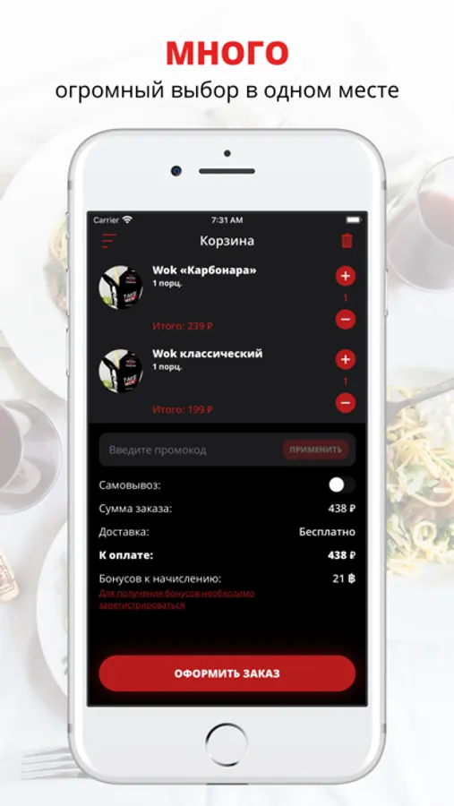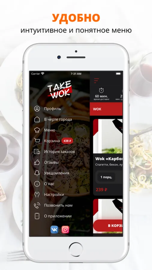 Разнообразное меню! У нас работают лучшие повара, а курьеры приятно порадуют вежливостью и быстрой доставкой.