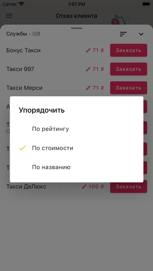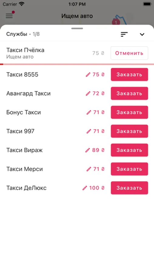 Приложение позволяет выбрать оптимальную службу для поездок по городу Полтава и ближайшим населенным пунктам.