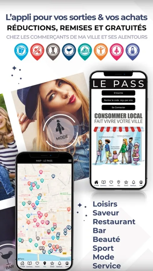 Application LE PASS - consommez local avec les Offres partenaires, Soyez récompensé de votre fidélité en consommant MOINS sur internet et PLUS dans les commerces locaux, en bénéficiant de remises et réductions toute l'année.