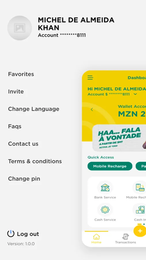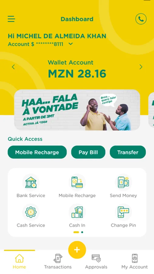 Através do mkesh, poderá enviar dinheiro para os seus familiares e amigos, bem como fazer pagamento de bens e serviços e ainda comprar recargas Tmcel, com grandes vantagens e bónus.