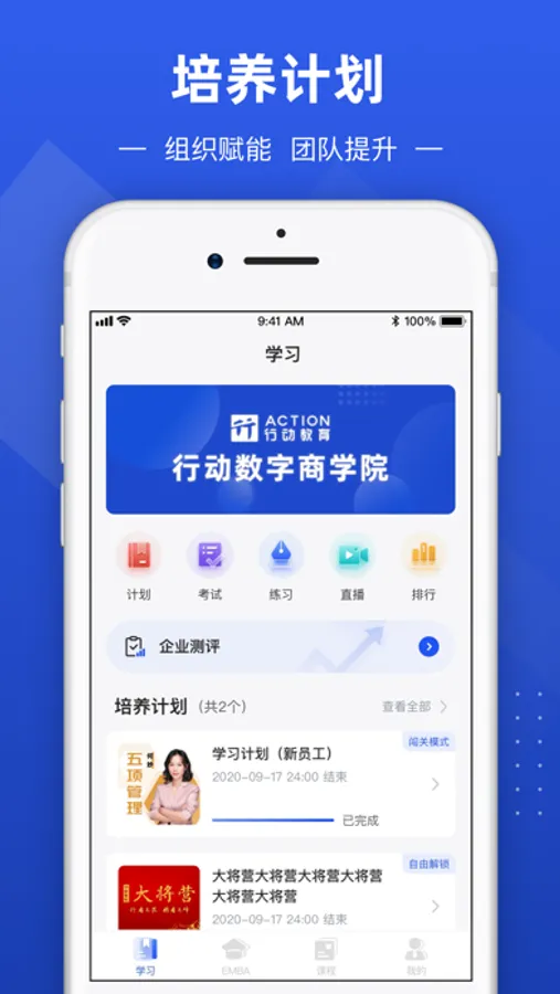 行动数字化商学院,是一家致力于用科技推动组织能力提升,驱动企业实现学习培训数字化转型的高绩效人才孵化云平台,由中国管理教育第一家A股主板上市公司行动教育(605098 )精心打造,通过企业大学SaaS平台+中高层干部孵化项目(大将云+将帅云),为企业及员工提供全方位体系化的智能学习落地服务。