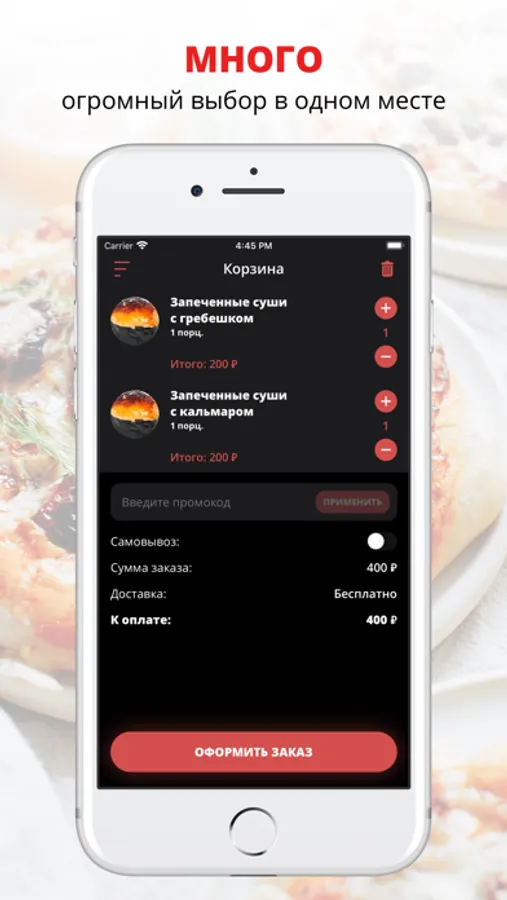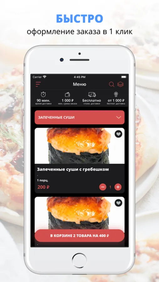 Все наши блюда подходят многоэтапную проверку качества и рецептуры. Мы готовим только на заказ, не используем полуфабрикаты и замороженную рыбу. Сбалансированный и неповторимый вкус наших блюд обеспечивается скрупулезным следованием оригинальной японской рецептуры. Мы используем только свежую рыбу, не маскируем её вкус и не заполняем блюда тем, чего в них быть не должно. Наши порции роллов и суши не оставят вас равнодушными. Наше приложение создано чтобы упростить заказы, получать новости о наших новинках, бонусах и подарках.
