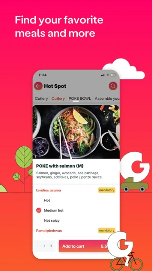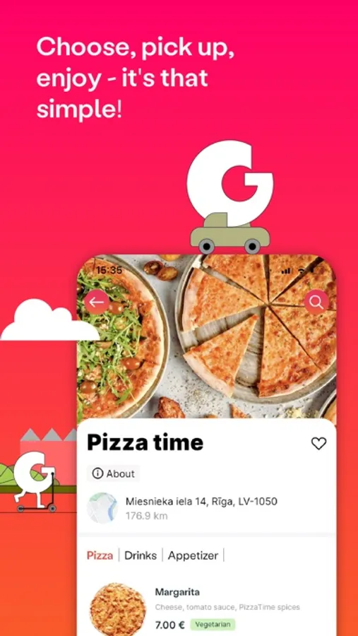 With Getify delicious food is always on the way. From those who live to eat to those who eat to live, the choices are unlimited. Your order delivered right to your car. Without the bustle and queues, freshly prepared food from your favorite cafe or restaurant can be picked up whenever available, wherever you go in Latvia.