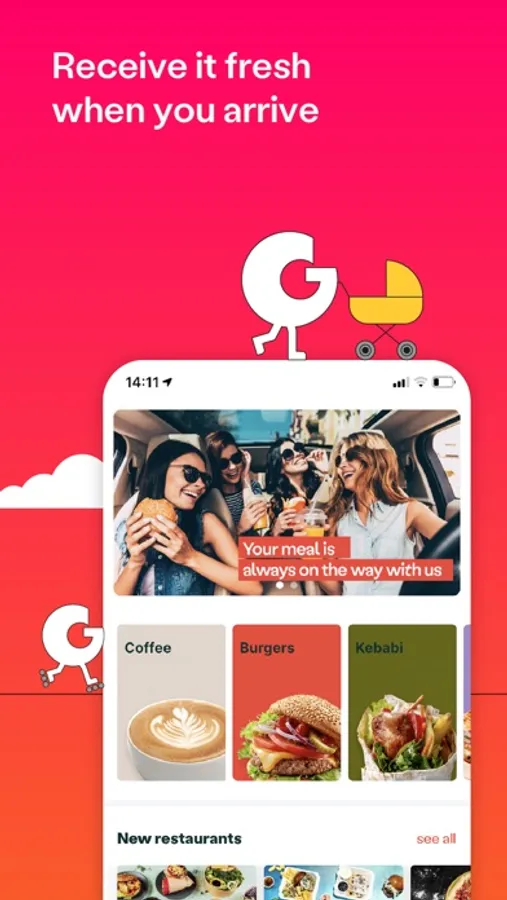 Getify is a modern, easy to use and convenient app for takeaway food and drinks. Set the planned route, choose the best from the wide range of restaurants and cafes along your route, order what you crave from the online menu and enjoy an abundance of choices just a few clicks away!