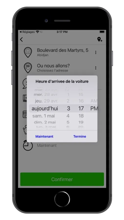 du véhicule qui vient vous chercher (immatriculation, marque etc.)