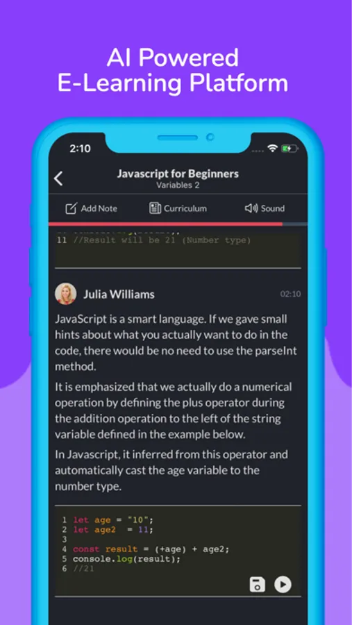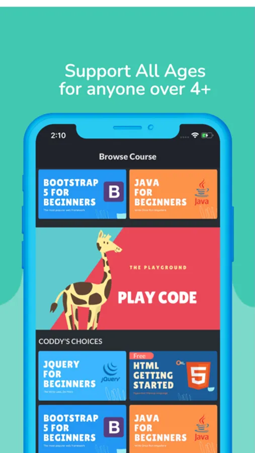 CoddyKit teaches the basics of software development and many modern programming languages and technologies such as Javascript, Java, Bootstrap 5, or Python 3. You can access the list of courses in the courses section. Or you can go to the Play page and talk to Coddy to find the most suitable courses for you. It's free learning app for learn programming. CoddyKit is the e-learning portal that makes learning coding enjoyable