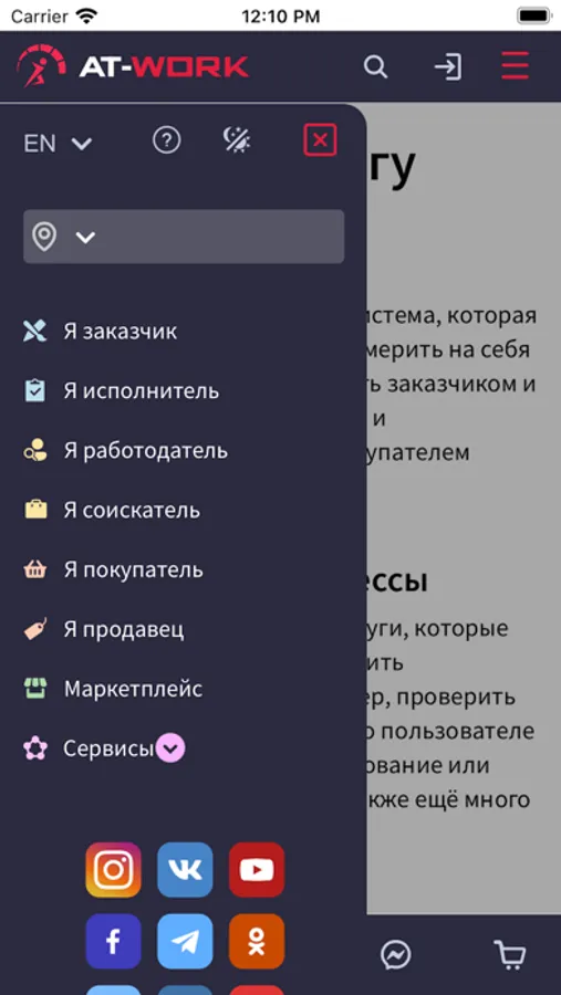 Эко-система AT-Work - это практично, быстро и удобно. Вы можете искать исполнителей, покупать необходимые товары и находить работу, не уходя с нашего сайта.