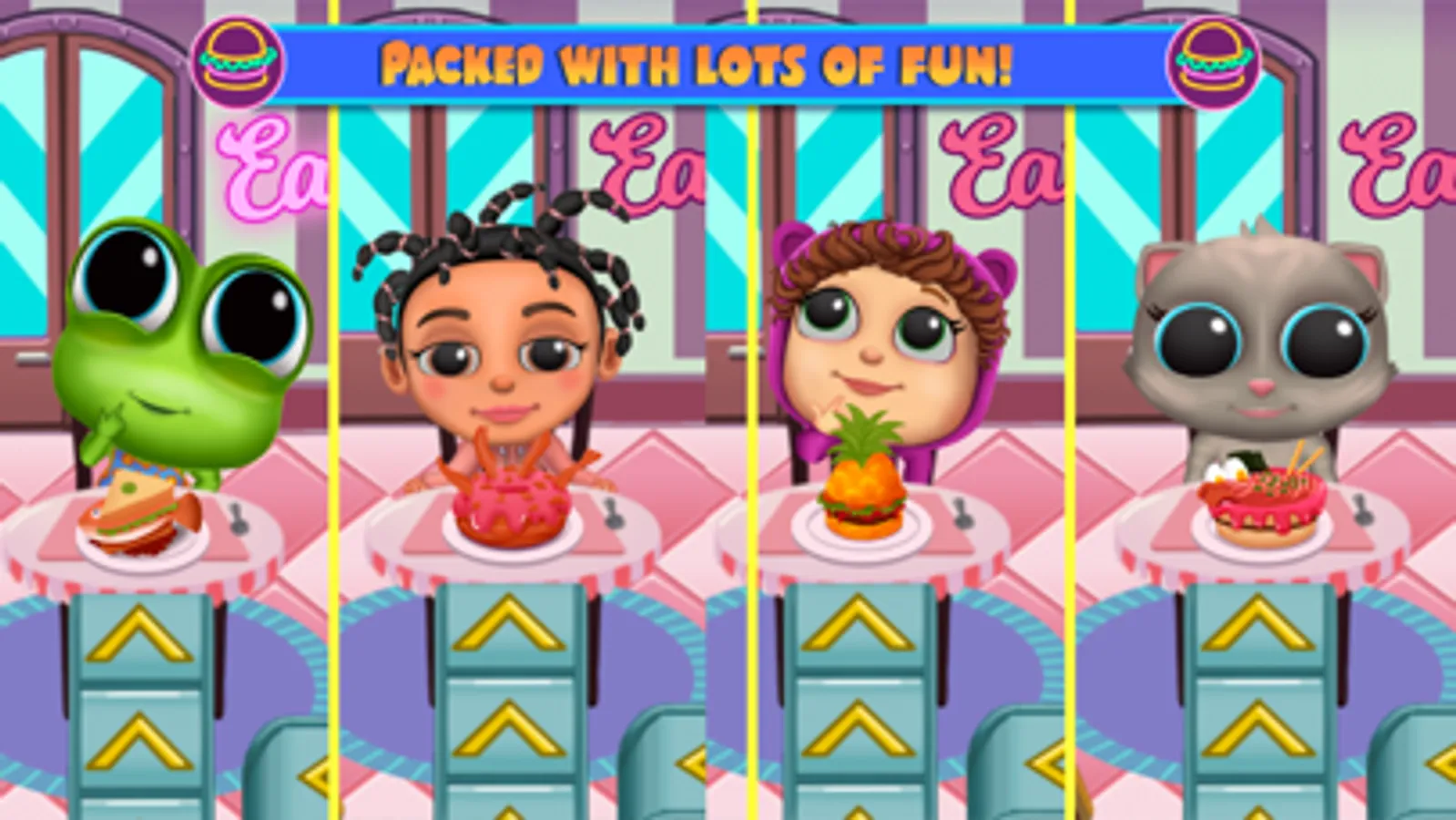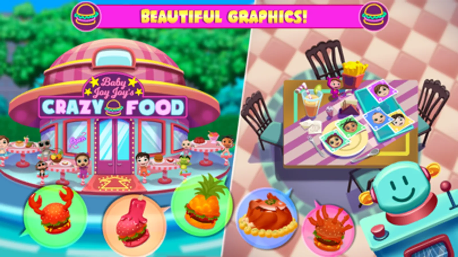 Have fun in the kitchen with Baby Joy Joy and her friends! Mix and match all different kinds of food in Joy Joy's restaurant. See if baby frog like bananas mixed with pizza, or if Baby Joy Joy likes strawberries and hamburgers!