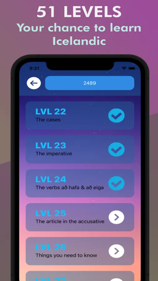 51 lessons, from 0 to advanced. A full Icelandic course in your pocket for the price of a coffee.