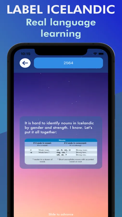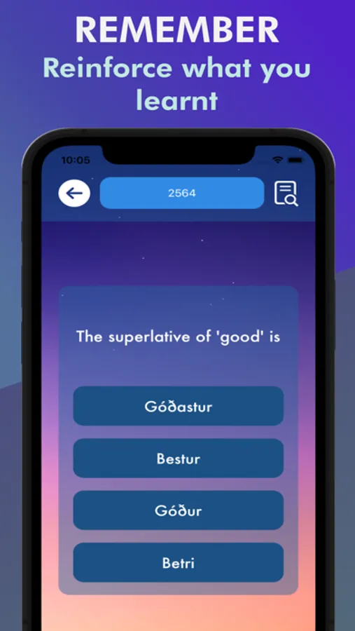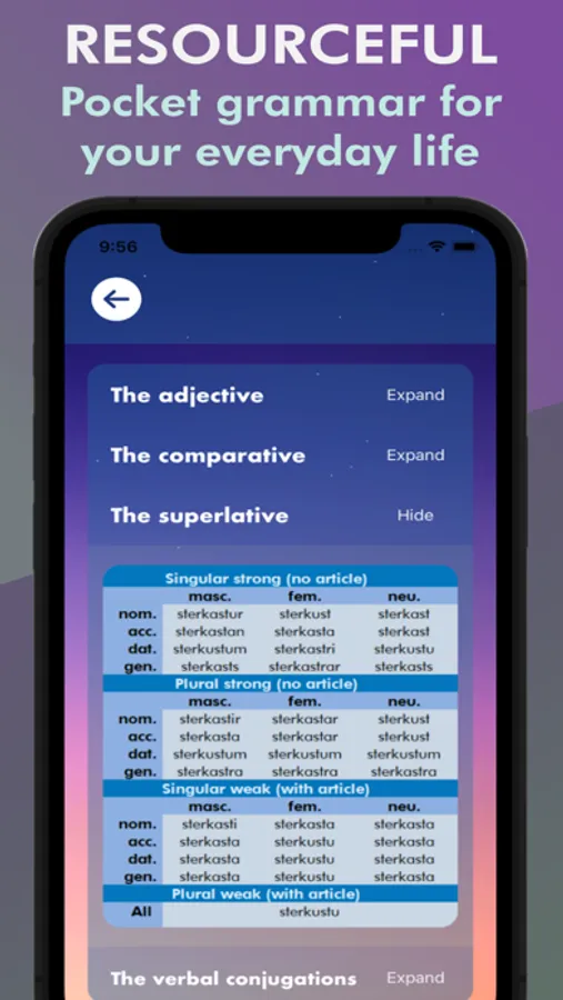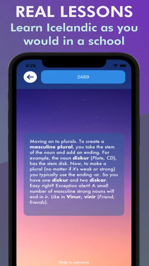Real lessons covering the whole Icelandic grammar. Native voicing and tons of exercises for you to practise!