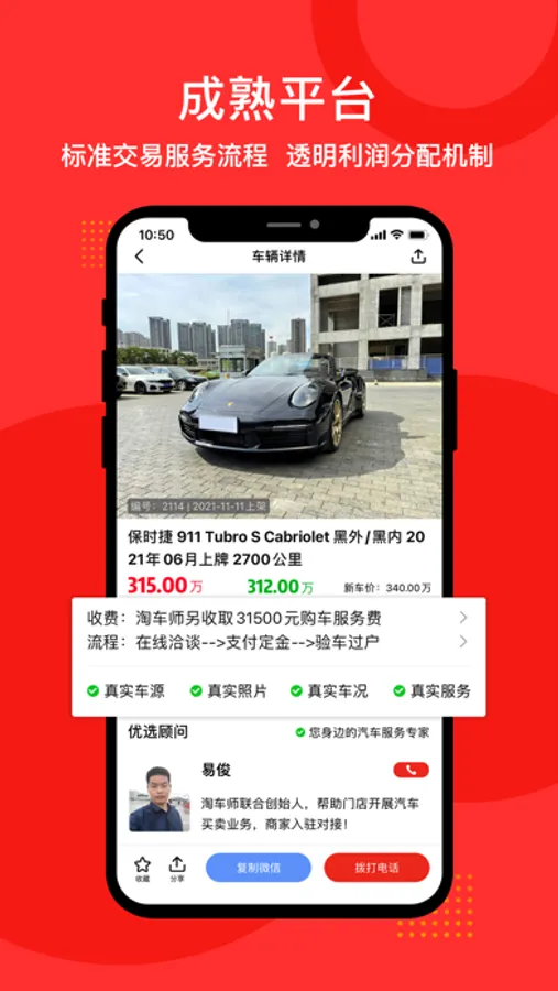 淘车师建立了标准的交易服务流程、可靠的车源质量保障、成熟的私域分销模式、透明的利润分配机制。平台认证合伙人可通过分享车源报价到微信朋友圈,激活朋友圈的潜在客户买卖车需求,凡是成交即可获得高额的销售佣金。