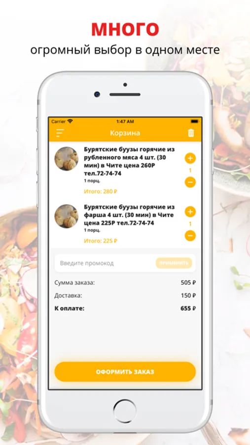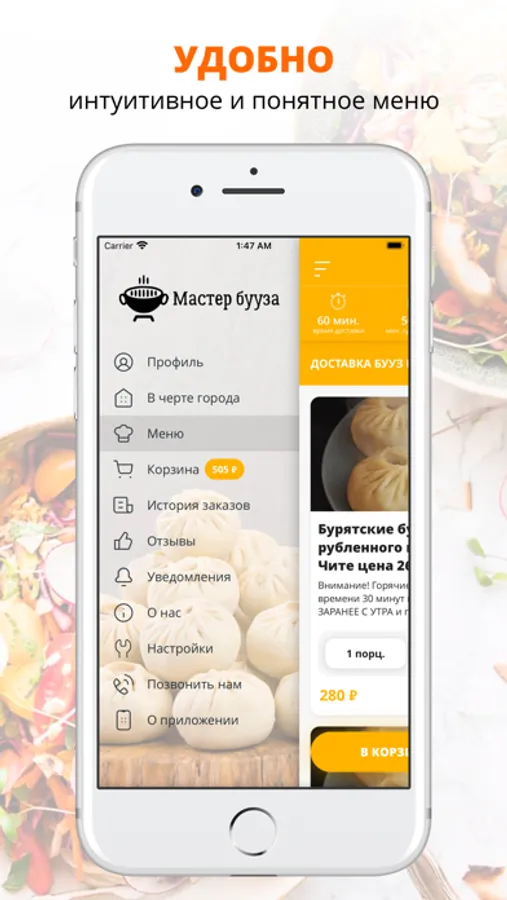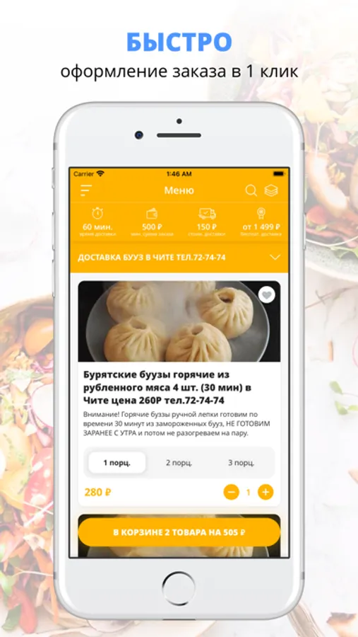 Разнообразное меню! У нас работают лучшие повара, а курьеры приятно порадуют вежливостью и быстрой доставкой.