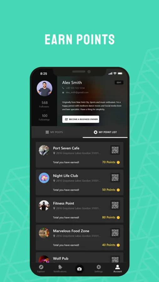 EYE VIE allows users to take creative media at participating businesses, in exchange for redeemable points, or even discounts. Business owners get the chance to market their businesses with the app users at a nominal cost, charged when, and only when, a successful and effective marketing event has occurred.