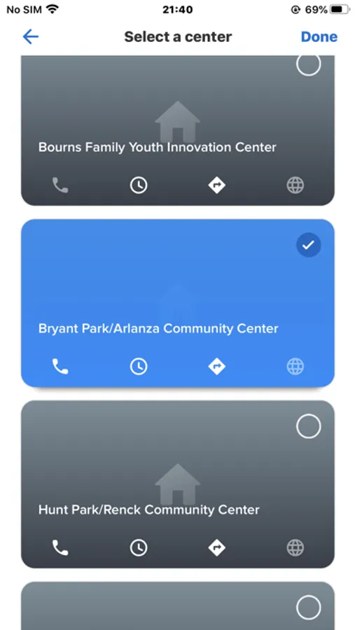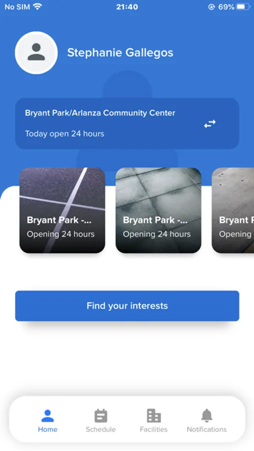 on the Home tab, view a center’s operating hours, manage your reservations and open your membership barcodes.