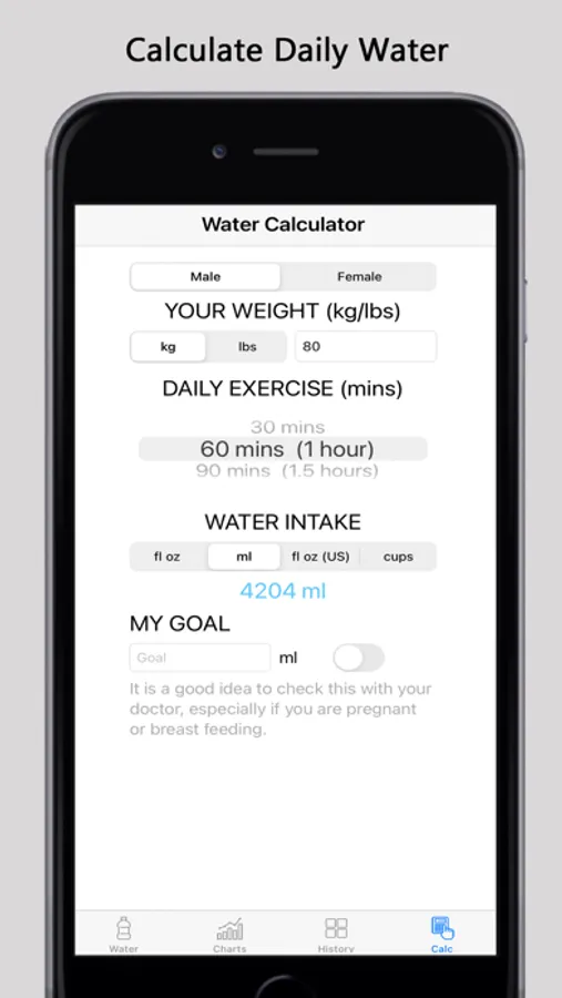 NOTE: Water+ is not a medical app. Water intake goal is just an estimate based on your weight. You should consult your health provider if you want to use Water+ for medical reasons. You should also check specific hydration requirements.