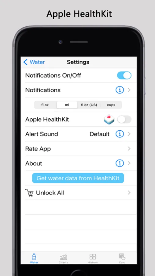 NOTE: HealthKit integration is to share your ‘Water’ data with the Apple Health app.