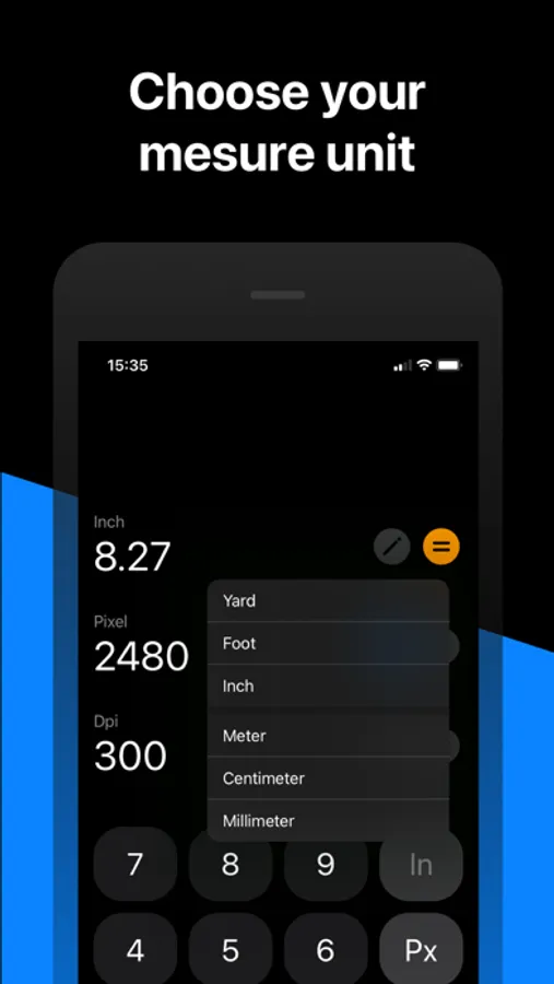 - For print size: Mm, Cm, M, Inch, Foot or Yard.