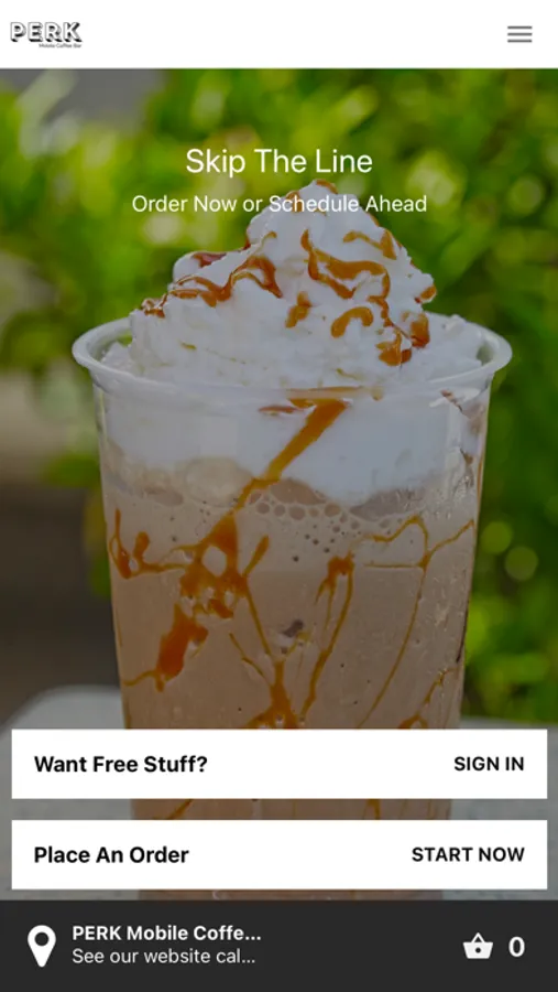 The PERK Mobile Coffee Bar app is a convenient way to mobile order ahead and skip the line.