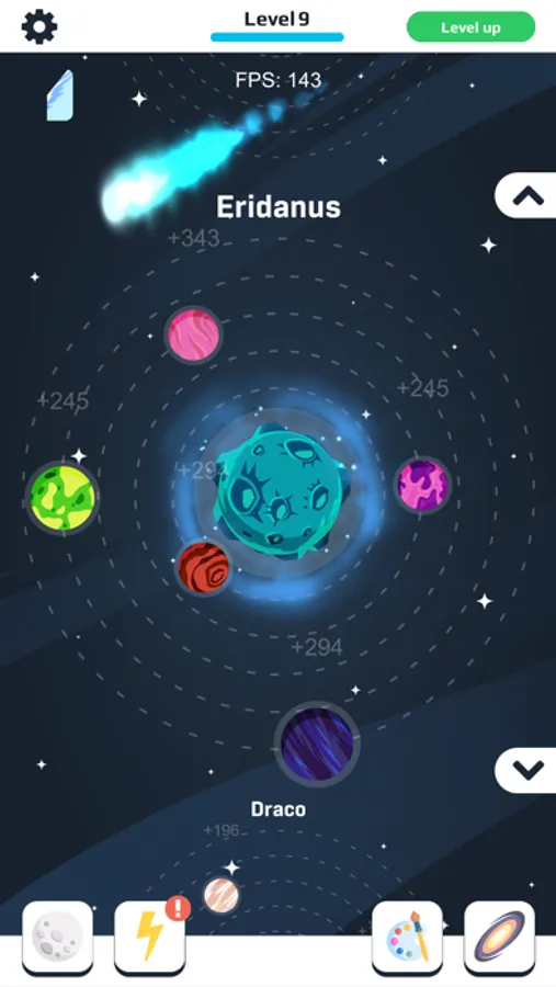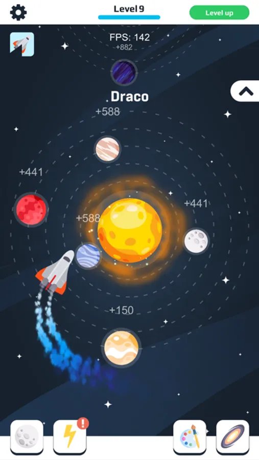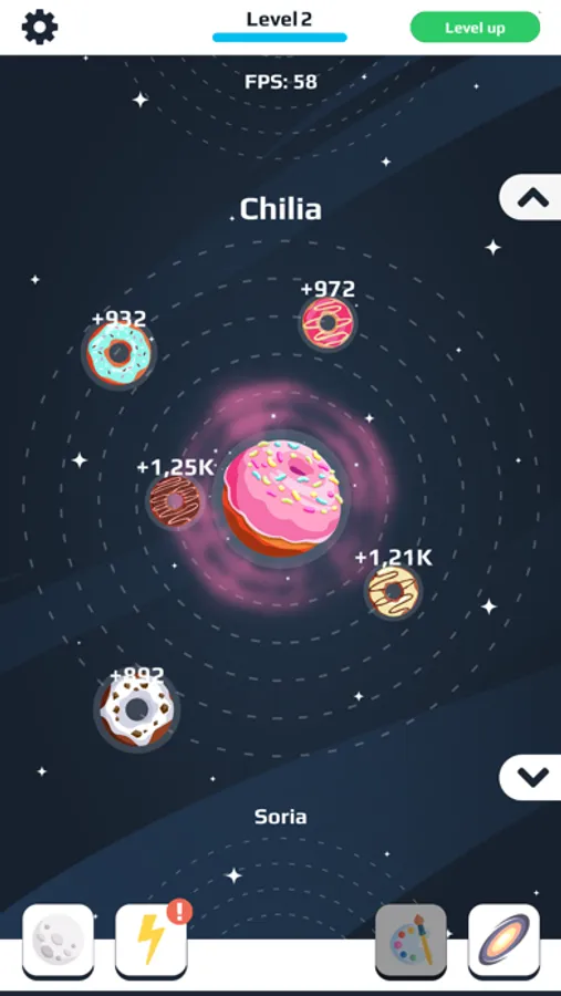 Playing the game is really easy: buy your planets, upgrade them and unlock new ones! Every planet has a passive income depending on it's level but you can always boost your Star Dust by clicking them or activating some boosters!