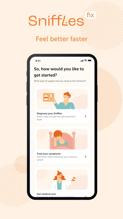 Sniffles by On/Go is your instant solution to help you, your family, friends, colleagues and loved ones feel better much faster. Sniffles provides quick access to highly effective treatments and trusted medical experts here to help you diagnose, treat, and fix sniffles rapidly.