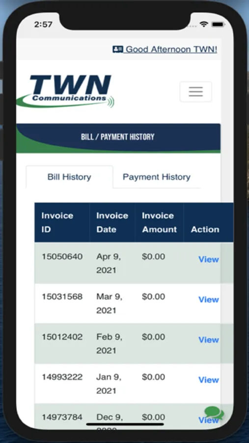 If you’re a TWN Communications Customer, we have great news. Paying your TWN Communications Internet and Phone bill doesn’t have to be a chore. Use our simple app to make payments and view payment history and account information. The My TWN app makes it easy for you to manage your TWN Communications account directly from your smartphone.