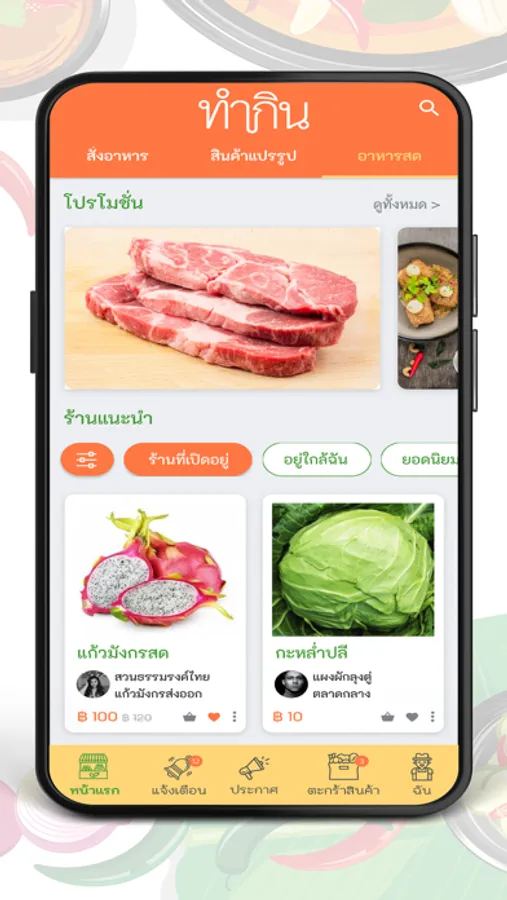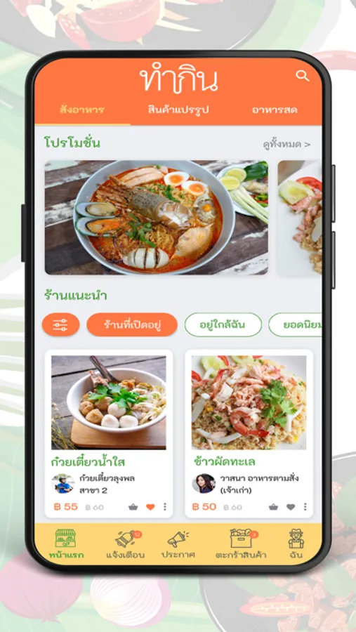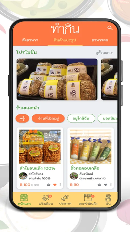 บริการสั่งอาหารออนไลน์ ทั้งเมนูพร้อมทาน ผลิตภัณฑ์แปรรูปจากสินค้าชุมชน และวัตถุดิบทางการเกษตร