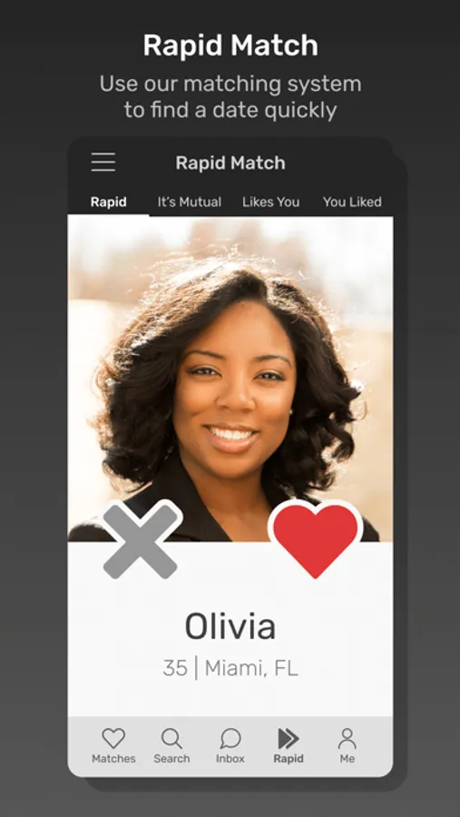 - Rapid Match: Are you in a rush and only want to look at photos? Decide which singles you like here instantly by swiping right or left