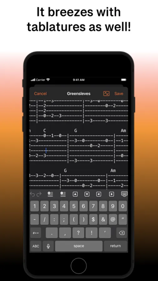 - Smart resizing according to your preference. As you resize, tablatures and chords/lyrics are kept consistent!