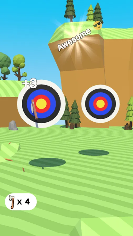 Throw an axe at the right spot to get a multiplier bonus and improve your aiming skills!