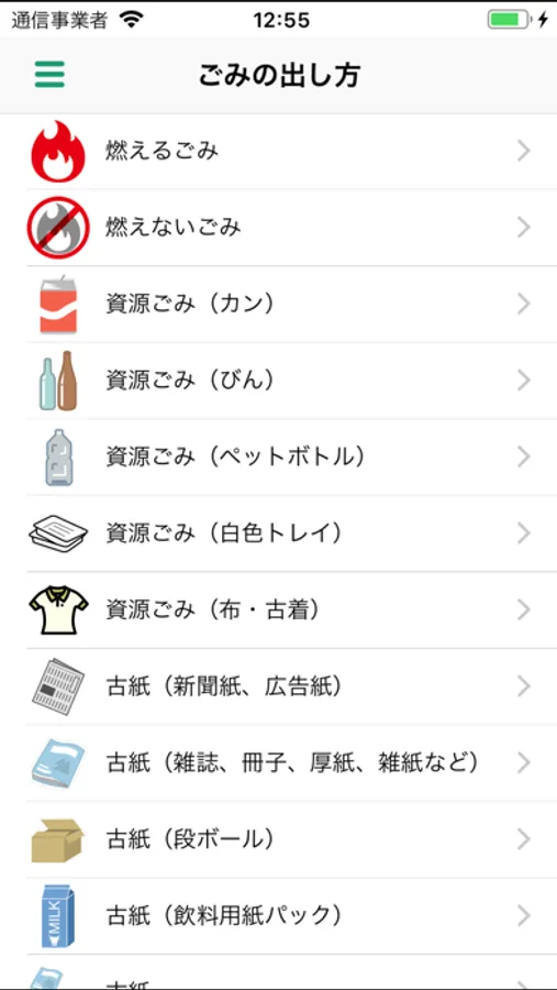 品目毎にごみの捨て方を確認できます。また、検索性の高い仕組みをつかっているため探しているモノを簡単に見つけることができます。