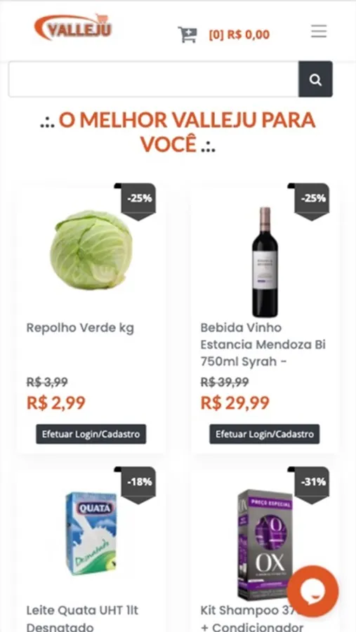 Aplicativo do Empório Valleju, com acesso a todos os produtos. Você poderá navegar e realizar seus pedidos diretamente deste app.