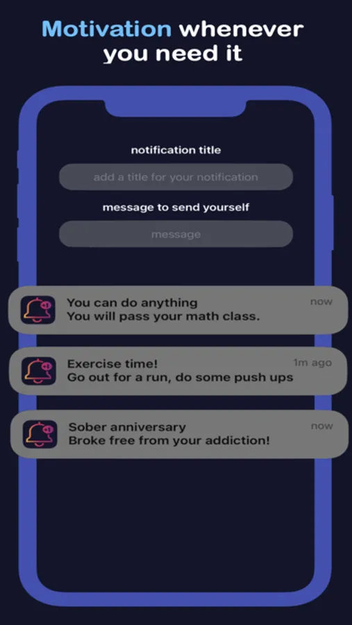 Create custom notifications to remind yourself of important events, quotes you want to receive, and lifestyle updates you want to remember.