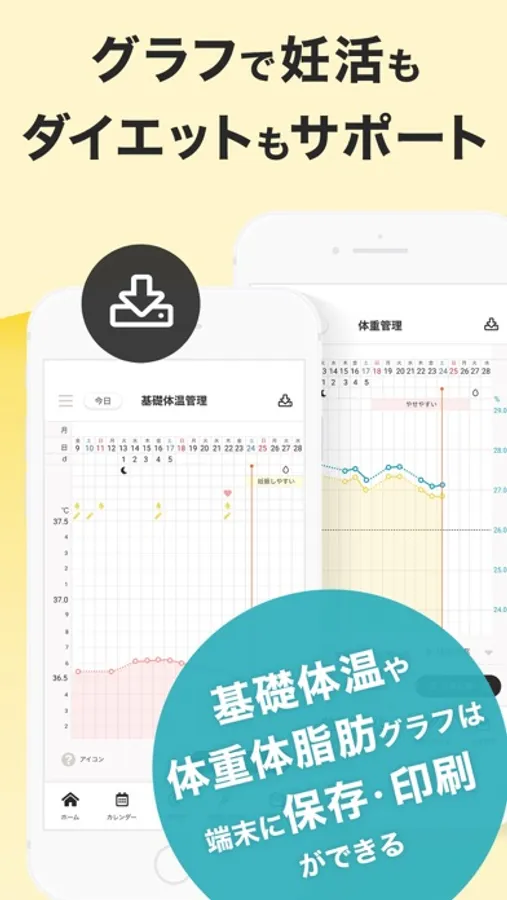 ・基礎体温、体重、体脂肪率の記録は1タップ