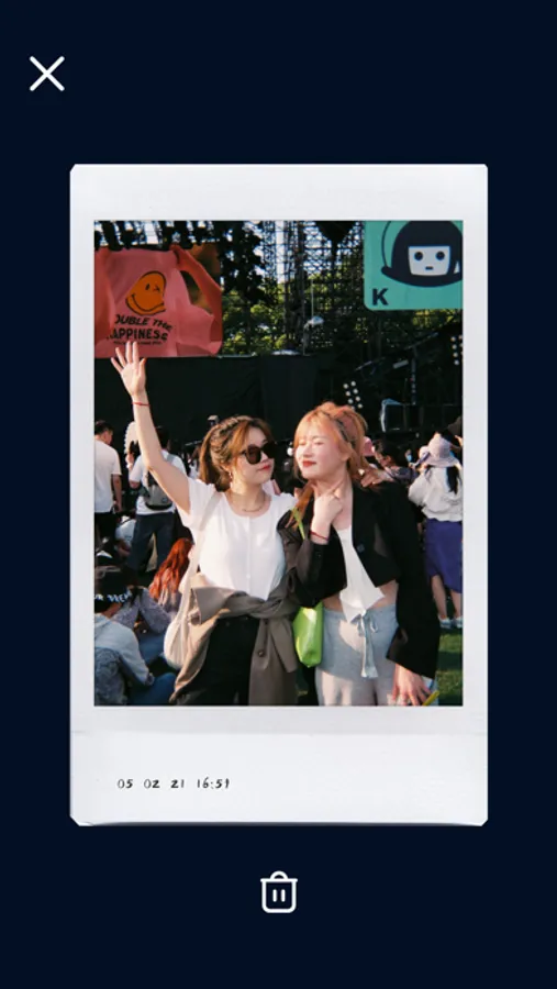 我们拟真还原了拍立得相机的体验。按下快门将消耗一张相纸,同时出片口吐出照片,见证缓缓成像的奇妙过程(约90s)。