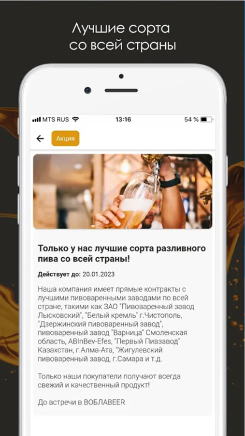 • Ваша бонусная карта Воблаbeer и ее актуальный бонусный баланс. Если у Вас еще нет карты, ее можно зарегистрировать прямо в приложении.